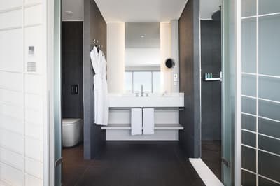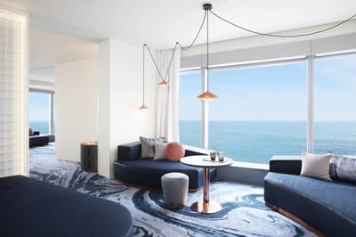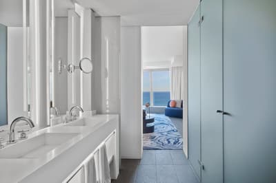 Elle profite d’une vue époustouflante de l’océan et de la ville. C’est le top ! Elle a tout le nécessaire pour un séjour confortable et reposant. Elle dispose d’un grand lit et d’un coin salon. Salle de bain chic avec douche à effet de pluie.