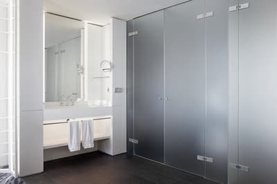 De sa grande baie vitrée, elle profite d’une vue merveilleuse et reposante sur la marina. Elle a tout le nécessaire pour un séjour confortable et agréable. Elle dispose de lits jumeaux et d’un petit coin salon. Salle de bain chic avec douche à effet de pluie.