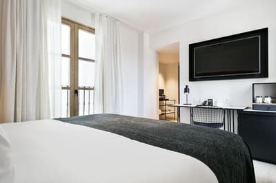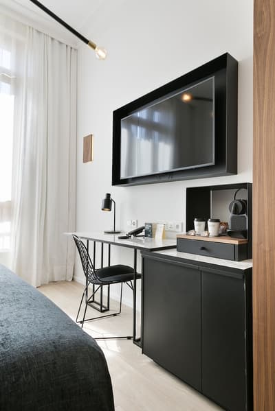 Mais ce passage secret, trop mignon ! En arrivant, on sait qu’on a fait le bon choix. Le fleuriste a éparpillé ses créations au pied de l’escalier en marbre, comme pour mettre en lumière ce cadre magnifique datant du 19e siècle. Avouez-le : vous vous voyez déjà rentrer ici en fin d’après-midi, après une session shopping, avec une multitude de sacs dans les mains ! Le Yurbban Passage Hotel & Spa, c’est vraiment ce qu’on veut dans la vie. Se sentir bien, tout en étant émerveillé en permanence. Se faire chouchouter sans se faire embêter. Se réveiller dans une chambre à la déco contemporaine et élégante, lumineuse. Succomber à la tentation d’un cocktail dans la piscine sur le rooftop, même si ça fait trop cliché. Emprunter un vélo hyper classe, pas comme celui qu’on a dans le garage depuis nos 15 ans, pour découvrir Barcelone en mode green. Mais attention, il faut quand même garder à l’esprit que cette bulle de sérénité n’est pas éternelle… Voici quelques conseils pour en profiter un max, avant de revenir à la réalité. 1. Le spa est gratuit, mais prévoyez un petit extra pour un massage divin, au moins un. 2. Ne manquez pas le coucher du soleil sur le toit-terrasse. 3. Faites marcher la boîte à souvenirs, nommée photo booth, avant le check-out !