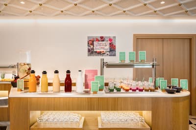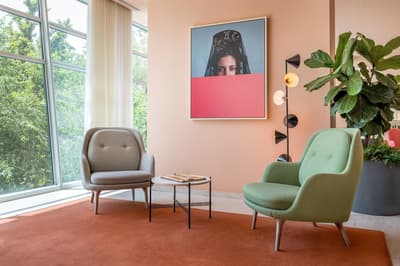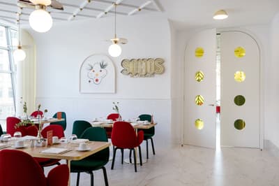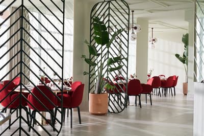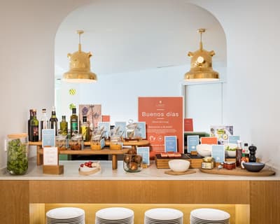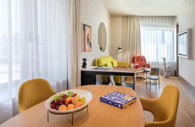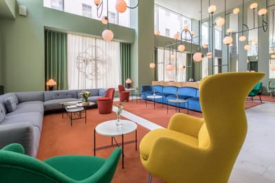 L’hôtel Barceló Torre de Madrid est un lieu détonnant ! Vous aurez l’impression d’entrer dans un musée d’Art contemporain tant la création y a sa place. C’est au designer espagnol Jaime Hayón que l’on doit cette pépite logée dans un des plus hauts gratte-ciels de la capitale. Dès l'entrée, vous serez accueilli par un ours zébré monumental, non moins sympathique, qui vous saluera avec son chapeau doré ! Les salons sont extravagants. Avec leur mobilier scandinave façon vintage mais revisité, d'élégants globes lumineux qui crèvent l'espace et d’immenses portraits aux murs, plus vrais que nature, l'ensemble est non seulement ludique mais classe. Derrière le comptoir du bar Garra figure une tour en verre néo-gothique... Fragmentaire, elle semble avoir été frappée par la foudre. Quant à ces couleurs acidulées , elles vous mettront tout de suite de bonne humeur ! Où que vous vous trouviez, vous serez scotchés par la vue ! Il faut dire que l'hôtel est situé sur la Plaza de España, difficile de faire beaucoup plus central, sauf à loger au Palais Royal ! Des chambres au restaurant, vous serez quasi suspendu au-dessus de la Gran Vía. De jour comme de nuit, c'est spectaculaire. Au 8ème étage, l'espace bien-être s'avance comme le pont supérieur d'un bateau de croisière. La piscine s'étire tel un couloir de nage. Et puisque le diable se cache toujours dans les détails, même les bouées de sauvetage sont là ! Au-delà de la rampe, les toits de Madrid s'offrent à vous...