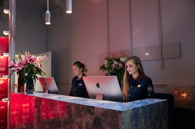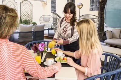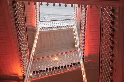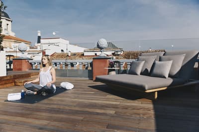 Prêt à voyager dans le temps ? L’hôtel Coolrooms Atocha est un concentré d’époques à lui-seul. Passez le porche baroque de cet ancien palais qui a vu aller et venir bien des carrosses, vous serez sous la protection d'Hermès, dieu des voyageurs… A moins que vous ne préfériez celle du portier, avec son haut de forme, sa queue de pie et sa paire de Richelieu ! Face à la réception, sous un plafond de 7 mètres de hauteur, un escalier monumental, éclairé en rouge, vous fera perdre la tête. Sur chacun des paliers, le chiffre de l’étage apparaît dans une grosse typo ultra moderne, rouge, encore, contrastant avec les moulures néoclassiques du bâtiment original. Reprenez votre souffle, à moins d’avoir triché en prenant l’ascenseur ! Poussez la porte de votre chambre, immense ! Ici aussi, le classicisme des pièces se laisse volontiers twister par la couleur et l’audace. Dans votre salle de bain, une baignoire design, posée à même le sol, nargue une robinetterie rétro. Et pour arrêter le temps, le Coolrooms Atocha vous invite au bord de la piscine, dans un charmant patio arboré. Ecoutez le glouglou de la fontaine et profitez-en pour commander un verre ! Déconnexion totale... #BeCool, c’est un peu l’idée ici non ?