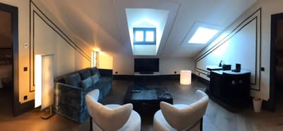 Le top ! Très spacieuse, elle dispose d’un grand salon meublé d’un canapé et de beaux fauteuils. C’est l’idéal pour un séjour romantique et serein. Les grands panneaux vitrés profitent d’une belle vue. Salle de bain chic avec une baignoire.