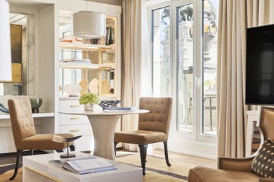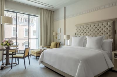 Plus spacieuse, elle procure encore plus de confort. Cette belle chambre profite d’une vue merveilleuse sur l’une des rues pétillantes de Madrid. Elle peut accommoder un lit King ou 2 lits doubles et dispose d’un canapé et de fauteuils dans son coin salon. Salle de bain chic avec baignoire en marbre.