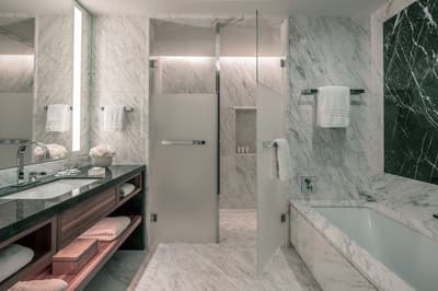 Installée aux étages, elle profite d’une belle vue sur l’un des quartiers résidentiels de la ville. Très agréable, elle a tout le nécessaire pour un séjour relaxant et confortable. Elle dispose d’un lit King et d’un coin salon meublé d’un canapé et de fauteuils. Salle de bain chic avec baignoire en marbre.