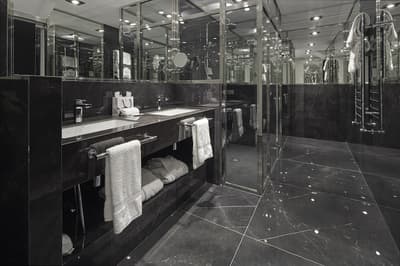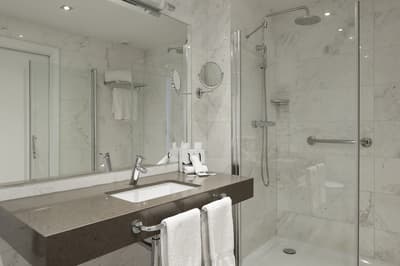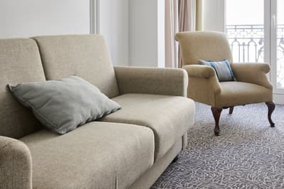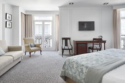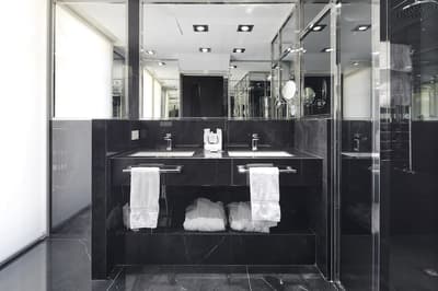 Plus spacieuse, elle procure encore plus de confort. Elle dispose d’un grand salon meublé d’un canapé et de fauteuils pour se relaxer. Les grandes fenêtres profitent d’une vue pétillante sur la ville. C’est l’idéal pour un séjour très agréable. Salle de bain chic.