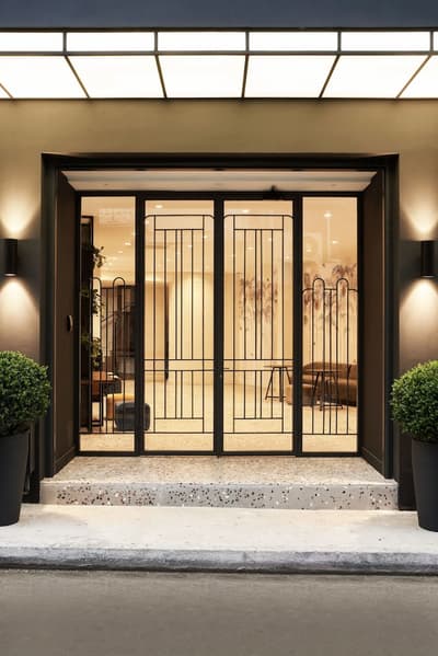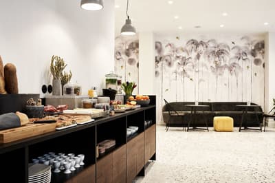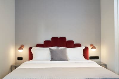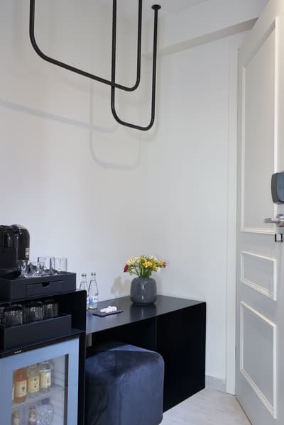 Si vous cherchez un hôtel qui se la joue Pinterest, c'est au Athens4 qu'il faut descendre ! Chronique d'une adresse qui a bon goût et qui donne vachement envie... Les chambres sont tout droit sorties d'un shooting pour Milk Magazine : papier peint géométrique aux murs, fauteuils et têtes de lits en velours framboise effet boudoir et salles de bain qui ne jurent que par le carrelage métro. Partout, des vases avec de l'eucalyptus séché, du terrazzo du hall d'entrée jusque sous les grandes tables en bois du p'tit déj', et des canapés aux courbes enveloppantes. Il se murmure que la moitié des chambres donnent accès à des balcons privés aux coussins couleur lilas : un spot de rêve pour démarrer la journée autour d'un café, du pain au sésame appelé "koulouri" et d'un peu de confiture de figues de barbarie. Et quand vous descendrez du taxi, pensez à lever la tête et à immortaliser les jolis auvents rayés noir et blanc de la façade, qui se reflètent dans chaque fenêtre. Story réussie garantie ! Pas de resto ici malheureusement, mais passez voir le concierge : il se fera un plaisir de vous trouver une table pour dîner. Comme dans cette taverne aux allures clandestines et aux nappes à carreaux vintage juste à côté.