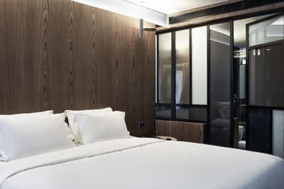Porte vitrée coulissante insonorisée, Rideaux occultants, Sélection d'oreillers, Essentiels pour le bain et les soins de la peau haut de gamme, Minibar, Coffre-fort dans la chambre, Téléviseur DEL 32", Accès Internet haut débit sans fil, Espace bureau, Machine à café Nespresso, Service à thé, Horloge audio Forte avec double USB et Bluetooth, Climatisation contrôlée individuellement, Couette à plumes, Lit de luxe Queen Size Beautyrest® de Simmons Treca, Service de restauration en chambre, Miroir de maquillage, Sèche-cheveux, Escalader, Peignoirs & chaussons, Service de ménage deux fois par jour.