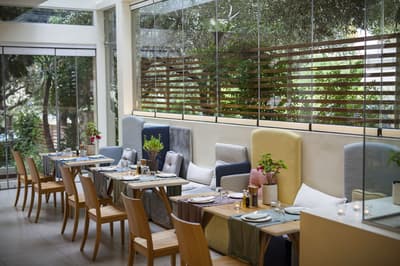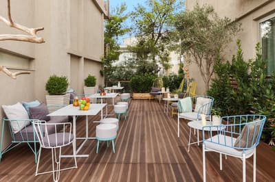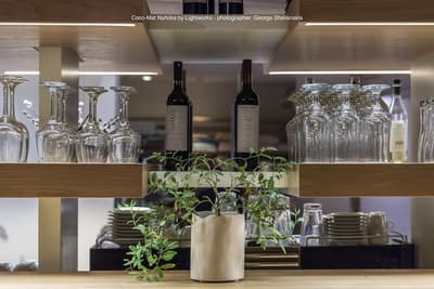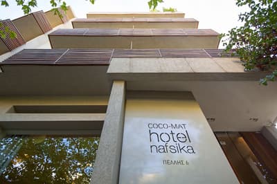 Simplicité, naturel et une literie de malade ! Le Coco Mat Nafsika Hotel est le pionnier de la marque Coco Mat, qui fait un tabac dans le monde entier avec sa literie de qualité et son mobilier zen. Au départ, Paul Evfordmidis, son créateur, voulait faire essayer à ses copains le matelas mis au point après un dodo sur un lit d'algues en bord de mer... Et il a ouvert l'hôtel ! Le secret des fameux matelas Coco-Mat, aujourd'hui vendus dans 17 pays ? Ils alternent couches de laine, de fibre de coco, de caoutchouc naturel et d'autres matériaux comme les algues grecques, le crin de cheval ou la lavande. Et ici, ils s'invitent dans un petit immeuble d'une rue plantée d'arbres, un peu paumée, de la chic banlieue de Kephissia. C'est un peu le Neuilly du coin. Calme et donc mieux que le centre pour séjourner ! Et puis dès qu'on y est, on n'a plus envie d'en repartir... De moelleux canapés, des chaises et tables en bois, dans le style hélleno-scandinave de Coco Mat, habillent un lobby convivial. Choisissez le livre ou le film que vous voulez dans la bibliothèque et la DVDthèque pour l'emmener dans votre chambre ! Demain matin, dans une ambiance sympa et nature, vous dévorerez un excellent ptit déj' bio — un des points forts du lieu avec sa fameuse literie et les vélos en bois rangés à l'entrée ! Design, fabriquées à la main en frêne blanc, ces bicyclettes sont à votre disposition. Last but not least : un bar sur le toit-terrasse vous permet d'admirer les muraux des bâtiments environnants, les collines, et jusqu'à la mer...