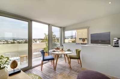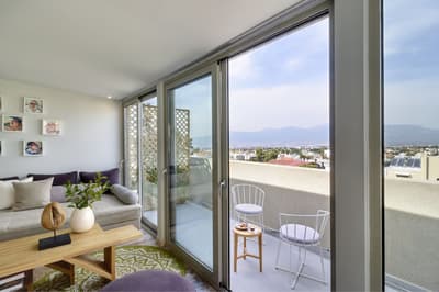 Moderne et accueillant, il dispose d’un bel espace de vie et offre une vue splendide sur le mont Parnitha que vous pourrez contempler depuis votre élégant salon de jardin sur le toit. Détendez-vous, sirotez une orangeade tout en profitant du soleil dans le confortable mobilier.