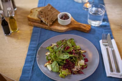 La décoration est chic et contemporaine avec des accents de bois qui se fond en harmonie avec la nature environnante, créant un espace frais et accueillant pour la détente. La chambre comprend un grand lit douillet Coco-Mat et la salle de bains en marbre est équipée d’une douche. Le tout dans une atmosphère relaxante et cosy !