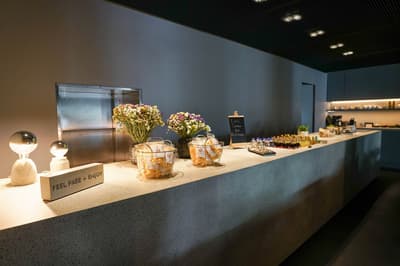 Le Periscope coche toutes les cases du boutique hôtel urbain, confortable et arty ! Créé par un collectionneur d’art, l’établissement bénéficie d’un excellent emplacement. En plein cœur du quartier chic et authentique de Koloniki. A l’écart des endroits hyper touristiques, mais à distance de marche des incontournables sites historiques. Si vous prenez le métro, mieux vaut ne pas être trop chargé. La pente est assez rude pour arriver jusqu’à l’entrée. Le bâtiment carré des années 50 affiche une façade aux lignes épurées. A l’intérieur, le look minimaliste de la réception contraste avec le personnel chaleureux et plein d’attention. En deux temps trois mouvements, vous vous sentez comme à la maison. Le grand lobby abrite un espace salon carrément cosy. Mobilier élégant, snacks et boissons en libre-service toute la journée. La déco est plutôt du genre épurée, mais le velours frappé des canapés et l’élégant camaïeu de gris et de bleus ajoutent un ton plus luxueux. A côté, vous trouvez la salle du petit déj' avec ses tables en béton et ses chaises hyper stylées. Au plafond, une installation artistique projette une scène sous-marine. Les parties communes sont ponctuées d’œuvres d’art modernes et de photo panoramiques d’Athènes. Des clichés que vous retrouvez dans les chambres à l’ambiance très zen. Pour une vraie pause épicurienne, la suite Penthouse est au 6e. Terrasse privée, jacuzzi et vue à tomber sur l’Acropole !