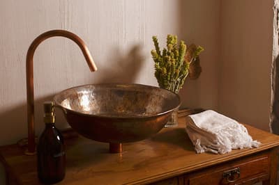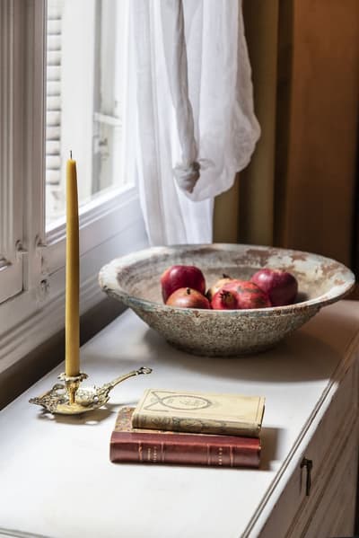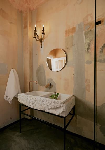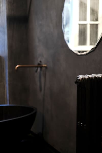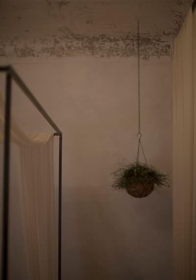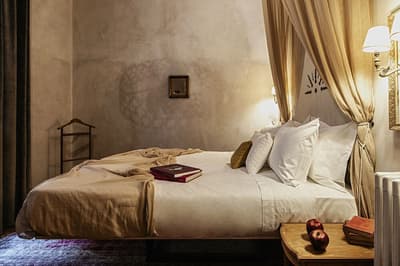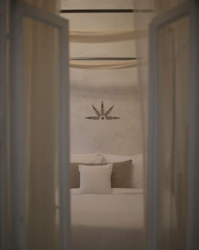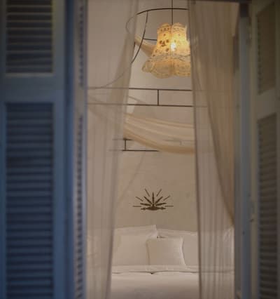 Ressemblant à une scène de roman, l’ensemble est dans un style de décoration rustique-chic avec un mobilier en fer forgé et se complète dans des tons ocres. La chambre est dotée d’un lit à baldaquin avec de beaux draps grecs et la salle de bains à faible éclairage est dotée d'une baignoire noire unique, équipée de plantes biologiques mélangées. Le tout dans une ambiance détendue et cosy !