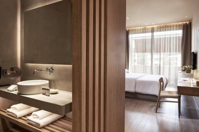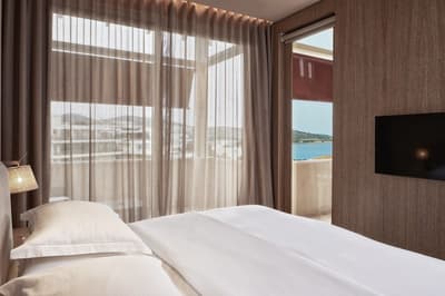 Couettes et oreillers en duvet, draps à haute teneur en fils, Espace de travail/bureau, Serviettes de plage, Wifi gratuit, Téléviseurs HD à écran plat, Produits de bain bien-être homéopathiques Korres, Sèche-cheveux, Minibar entièrement équipé, Coffre-fort dans la chambre, Café Nespresso, Lit d'appoint pour 3ème/4ème personne.