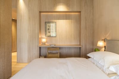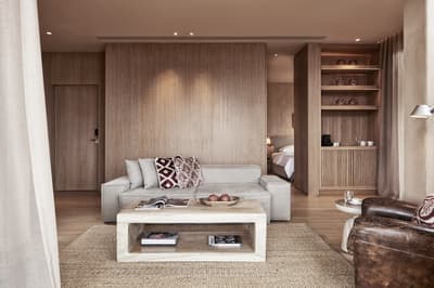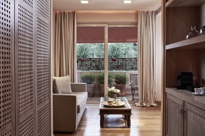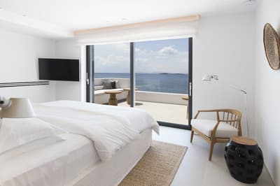 Spacieuse, le décor est dans un style méditerranéen chic avec des tons de terre apaisants et des meubles artisanaux. La chambre est dotée d’un lit king avec des draps en coton moelleux et d'un lit d’appoint pour une troisième personne. Un long et spacieux couloir mène à un bureau pour travailler et la salle de bains moderne et élégante est équipée des produits de bien-être homéopathiques Korres. Le tout dans une atmosphère chaleureuse et accueillante !