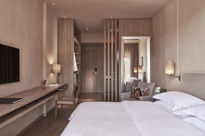 Couettes et oreillers en duvet, draps à haute teneur en fils, Espace de travail/bureau, Serviettes de plage, Wifi gratuit, Téléviseurs HD à écran plat, Produits de bain bien-être homéopathiques Korres, Sèche-cheveux, Minibar entièrement équipé, Coffre-fort dans la chambre, Cafetière Nespresso.