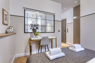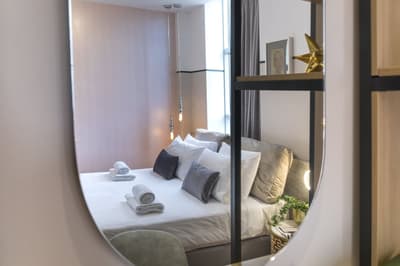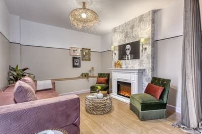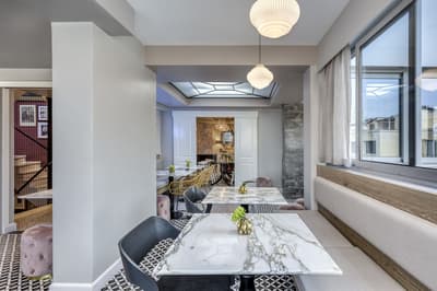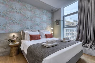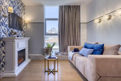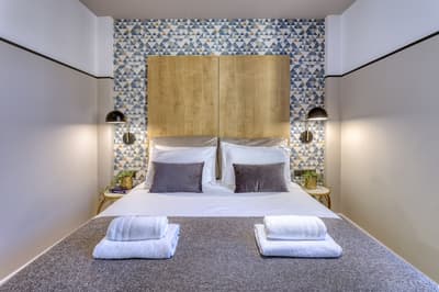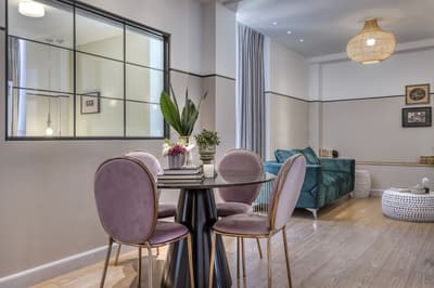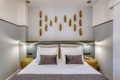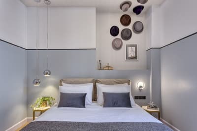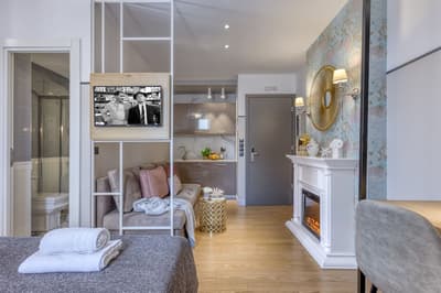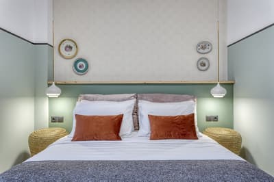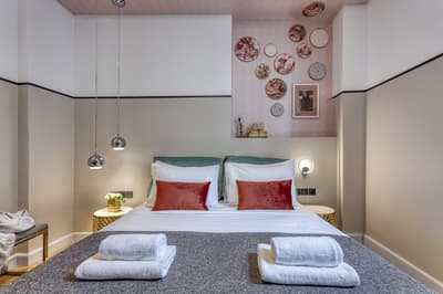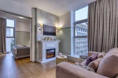 Véritable œuvre d’art, ce penthouse arbore une décoration sophistiquée et luxueuse et combine des tendances vintage et shabby chic contemporain. La chambre principale est dotée d’un lit king et un canapé-lit double est joliment disposé dans le salon face à la cheminée décorative. Vous pourrez vous détendre sous la douche hydromassante à l'italienne dans l’une des deux salles de bains en marbre. Ambiance conviviale et cosy !