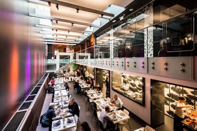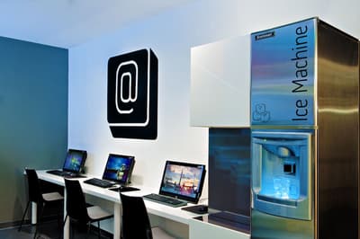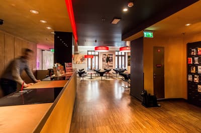 Pourquoi dormir au milieu des requins quand vous pouvez dormir entouré d’œuvres d’art ? On sait pas si c’est plus joli mais c’est quand même 1000 fois plus safe ! Au moins, elles, elles ne risquent pas de vous manger dans la nuit. Quoique, Velvet Buzzsaw… En plus, l’hôtel a été aménagé dans une ancienne usine du XIXème siècle donc l’architecture est un peu industrielle avec des poutres métalliques dans le bar. Si vous vous croyez pas dans un musée d’art contemporain, je sais pas ce qu’il vous faut de plus ! Les tableaux sont différents dans chaque chambre mais surtout super stylés. Y a de jolis portraits, des petites biquettes qui se font des bisous et d’autres plus abstraits mais ils apportent toujours une tonne de couleurs à la chambre. Même les plus réticents à l’art seront convaincus par une œuvre immersive. Genre vous voyez les araignées à grimper dans les aires de jeux pour enfants, le truc imposant mais un peu dangereux quand on y pense ? Bah il y a ça dans une des chambres. Les bâtons multicolores aux murs se confondent avec les barreaux du lit superposé, il vous faudra donc grimper – pas littéralement, il y a des escaliers – pour atteindre celui du haut. Ouais ouais, si l’art ne vous suffisait pas, là c’est le retour en enfance assuré !
