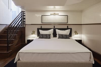 Chaque petit détail compte et ça se sent. En même temps, avec un bâtiment comme ça, vaut mieux en prendre soin ! Parce que oui, l’hôtel construit en 1881 a été classé monument historique. Et l’intérieur est tout aussi fabuleux : un petit coin avec des tableaux, du mobilier à la croisée du super moderne et de l’ancien, des lustres royaux dans chaque chambre. Comme si vous étiez dans un palais du Budapest de la Belle Epoque avec toutes les vibes hongroises qui vont avec. Attendez, vous êtes peut-être dedans en fait. Avec l’opéra en face, il serait judicieux de se poser la question. Sérieusement, les suites vous feront y croire. Des escaliers entre chaque pièce, des vélux faisant rentrer un halo de lumière et même des rooftops privés avec de la fausse pelouse. Bon ça, ce ne sera que pour quelques élus. Mais vous vous imaginez en haut de votre trône de fer (votre transat, plus honnêtement, mais c'est déjà bien) à regarder le monde d’en haut ? Budapest est à vous. Répétez-le trois fois. La Dame Blanche n’apparaîtra pas, non, mais vous vous y croirez ! Une chose est sûre : l’essayer, c’est l’adopter. Si vous revenez à Budapest, Callas House sera définitivement your house !