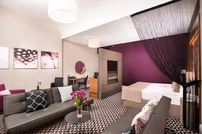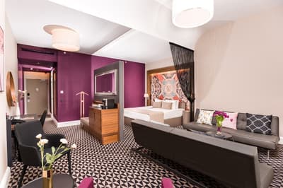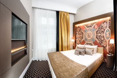 The best of the best ! Cet hôtel est le mieux noté de Budapest sur de nombreux sites. C’est peut-être un détail pour vous mais pour moi, ça veut dire beaucoup. Quand on voit l’intérieur de l’hôtel, on comprend très vite. Déjà, il est construit de sorte à faire une sorte de patio, baignant sous le soleil à travers le plafond de verre. Y sont installés plein de luminaires magnifiques et surtout de fauteuils design où vous pourrez vous installer quand vous le souhaitez, pour profiter de la beauté du lieu. Tout le lobby donne sur les allées intérieures de chaque étage qui en font tout le tour. Alcôves, peintures, petites rambardes en fer : l’architecture est juste dingue ! Dans les chambres, pas de déception, on est sur le même niveau de standing, des murs prune et des rideaux de fils qui vous attendent. Des fenêtres inclinées laissent entrer toute la lumière du jour dans la chambre et offrent une vue panoramique incroyable sur la ville. Une chambre en angle parfaite pour admirer la vue, ou encore mieux une suite avec terrasse et vue sur la basilique. Le Moments n’est qu’un hôtel 4 étoiles mais honnêtement, il est en voie pour devenir un 5 étoiles ! En tout cas, il le mérite amplement.