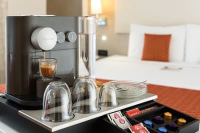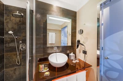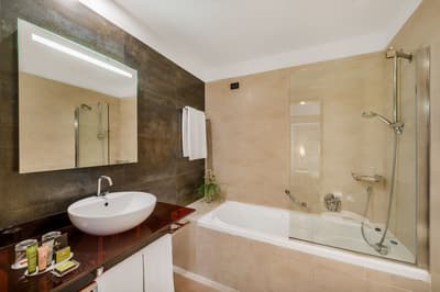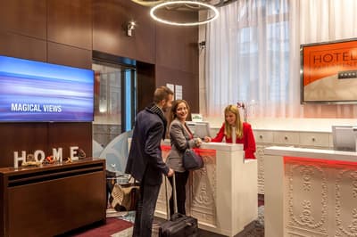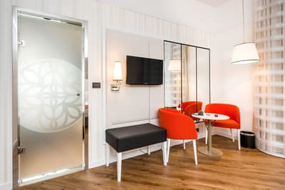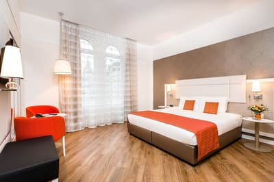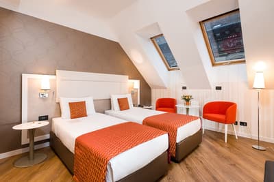 Bon, on vous prévient tout de suite : ce n’est pas le parlement, hein ! Mais honnêtement, c’est tout comme tant l’hôtel s’en rapproche. En termes de proximité déjà, vous serez en plein cœur de Pest, mais également de l’extérieur comme de l’intérieur. La façade historique est superbe, la décoration intérieure encore plus. C’est un arc-en-ciel de couleurs qui vous attend : des fauteuils rouges, oranges, bleus dans le bar-lounge et surtout une abondance de violet qui apporte un côté très chic. Le tout se reflétant dans les grands lustres brillants. Les escaliers mènent partout et nulle part à la fois, les grands espaces vitrés laissent entrer toute la lumière du jour. Pour encore plus d’éclat à travers toutes les pièces, comme s’il y en avait besoin ! Ce boutique hotel est juste à la pointe de la finesse. Si vous ne nous croyez pas encore, visualisez juste le spa avec sauna et jacuzzi qui paraissent juste trop reposants. Le service est quant à lui exceptionnel. Ou alors tout le monde a juste été acheté par toutes les boissons –thé, café et jus- en libre-service à longueur de journée. Ne soyez pas dupe, faites la part des choses !