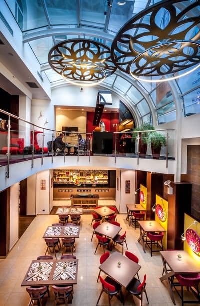 Des escaliers dans tous les sens, des lustres brillants de mille feux et une décoration chic. On n’est pas au parlement mais on s’y croirait ! D’où le nom…