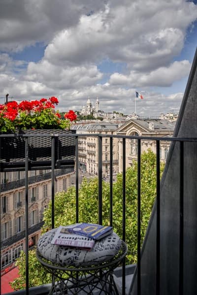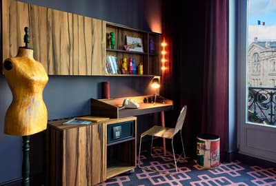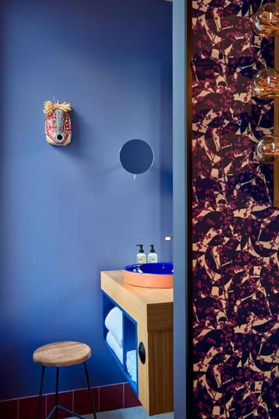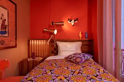 Si vous débarquez à la gare du Nord, c’est pas compliqué, it’s straight ahead, de l’autre côté de la rue ! Si si, la longue façade avec les frontons, les balcons filants sur 3 niveaux et les jardinières de géraniums, au-dessus des brasseries. D’ailleurs le nom est écrit en gros au 4e étage, le long du garde-corps ! La grande entrée se trouve à l’angle, à côté d’un kebab typique de ce quartier au brassage ethnique intense. Les designers, aidés d’un historien local, sont allés dénicher des figures emblématiques du 10e arrondissement pour s’inspirer de leur univers. Le résultat, c’est un hall inspiré par le street art et surtout un métissage assumé, flashy et trendy. Partout, dans les chambres comme dans les espaces communs, ça déborde d’objets et de couleurs. A chaque recoin, vous voudrez prendre une pic originale et la coller sur Insta. Tentez une chambre "plus" avec un balcon donnant sur le parvis de la gare, vous aurez l’animation avec une insonorisation au top, donc pas de bruit. Petit détail qui résume tout : c’est un plat à tajine qui fait office de lavabo. Voilà qui donnerait presque faim. Justement, le resto Neni sert une super cuisine israélo-libanaise. Et vous pourrez finir la soirée au Sape Bar, inspiré par la mode et les dandys africains.