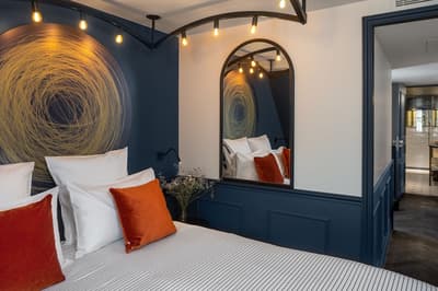 Hipster mode activated. Notre âme vibre devant la promesse alléchante de l’hôtel Chouchou, qui ferait se trémousser d’impatience n’importe quel habitant du 11e arrondissement. Sucré à souhait, l’hôtel ne propose pas de peanuts (vous l’avez ?). Ses chambres sont de délicieuses petites cacahuètes craquantes, à dévorer compulsivement et sans faim, enrobées d’un nappage mi-bobo, mi-design, totalement craquant. Tous les ingrédients sont là pour réveiller l’âme française, tout en offrant un cadre moderne, vibrant d’énergie. Bar guinguette, food market, bains privatifs, décoration minimaliste mais terriblement chaleureuse… Vous aurez l’impression de découvrir l’enfant mystérieux des villes les plus trendy du moment, à mi-chemin entre Paris, Copenhague ou Budapest. Plus qu’un hôtel, c’est un lieu où les bons vivants viennent se retrouver pour célébrer la vie. Si vous y en passez les portes par hasard pour un premier séjour, vous y reviendrez sans aucun doute pour siroter un cocktail lors des sessions live de fin de semaine. Ou découvrir les nouveaux arrivages en circuit court des producteurs du coin. C’est l’hôtel à recommander à tous les couples du monde ou les startuppers en quête d’un nid pour la nuit. Voire à ceux qui manqueraient d’idée pour un date Tinder de très haute volée.