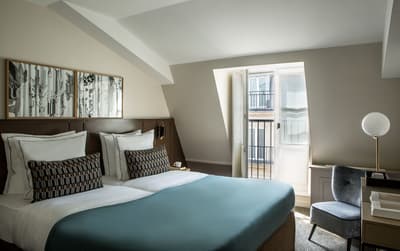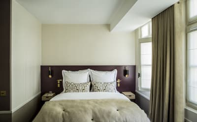 Envie d'un lieu riche en histoire ? Ancien hôtel particulier construit dans les années 1840, La Tamise a appartenu à la famille De Noailles et abrité le Président Mac Mahon... Transformé pour accueillir des voyageurs en 1978, il a connu des hôtes anglais prestigieux : à la Belle Époque, ceux qui accomplissaient leur « grand tour » après leurs études, puis, dans la deuxième moitié du 20e siècle, les mannequins stars des années 70, comme Twiggy. Et en plus d'avoir de la bouteille, il est hyper bien placé, cet hôtel : au cœur de Paris, dans la paisible rue d’Alger, à deux pas de la Place de la Concorde, des jardins des Tuileries et du Louvre... Et dedans ? C’est un cocon de 19 chambres entièrement restauré avec la décoratrice Cybèle Paluel-Marmont, en 2015. Et tout en se réinventant, l'établissement a su conserver l’esprit et les matériaux de son origine : les vitraux, les carreaux de ciment et les parquets anciens ont été préservés ou restaurés. Idéal pour les couples, ce 4 étoiles qui vous plonge ainsi dans un luxe authentique. Et puis c'est le spot parfait pour sillonner Paris : d'ici, vous pouvez aussi bien aller visiter les grands monuments que shopper dans les boutiques du fameux Faubourg Saint-Honoré.