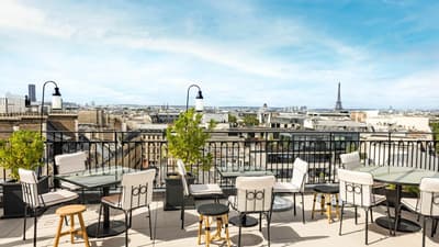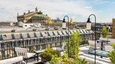Attention, le Kimpton St Honoré Paris pourrait bien devenir the place to be ! Pour sa première adresse en France, le groupe Kimpton Hotels & Restaurants investit rien de moins qu’un emblème de l’Art nouveau à Paris. Façade inscrite à l’inventaire des monuments historiques et ornée de balustrades aux motifs floraux, murs blancs et ferronneries noires à l’intérieur… L’ancienne Samaritaine Luxe s’offre une seconde vie sous la bannière Kimpton. Ce temple du luxe devient un établissement 5 étoiles de 149 chambres et suites. Inspiré de l'esthétique minimaliste de l’Art nouveau et signé de l’architecte d’intérieur Charles Zana, le décor est forcément chic. Chaque chambre a été pensée comme un appartement parisien, avec des fenêtres d’atelier, des œuvres d’art et un balcon pour certaines. Le lieu joue aussi : vous êtes boulevard des Capucines, entre l’Opéra, le Faubourg Saint-Honoré et le Jardin des Tuileries ! Vous pénétrez dans un grand hall où un ascenseur d’époque vous transporte vers le bar en rooftop… Avec, en prime, une vue à 360 degrés sur Paris. Et of course, l’adresse a une piscine, un spa à la pointe, un restaurant d’inspiration californienne… What else?
