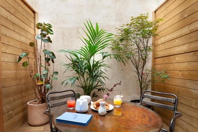 Mais... ce serait pas la perle rare, si difficile à dénicher à Paname ? Il semble bien, tellement ce discret petit boutique-hôtel 4 étoiles collectionne les éloges ! Dès l’espace d’accueil et les parties communes, il est tendance au niveau déco avec du mobilier vintage, une touche chaude et industrielle (béton ciré, cheminée rétro, plein de luminaires au plafond). L’accueil vous emballera direct, le personnel est impec, drivé par une directrice au top niveau. Les 30 chambres sont spacieuses, bien insonorisées, équipées d’une literie de qualité, d’une tablette et d’une télé avec Chromecast et Netflix. La nouveauté 2021, c’est l’ouverture d’un spa-hammam doté d'une jolie carte de soins et massages. Et côté resto, pas de lassitude ! Grâce à un accord avec « For the Love of Food » (un incubateur de jeunes cuistos), le ou la chef(fe) change tous les trois mois. Rassurez-vous, l'esprit reste le même : cuisine plutôt exotique, créative, goûteuse et colorée, en version dîner, salle ou terrasse sur rue, et en brunch. Le tout s’accompagne d’un tarif sympa et de bons produits au petit-déj’. Que demander d’autre ? Un chouette quartier peut-être… Eh ben c’est le cas : la rue Oberkampf est juste au coin, idéale pour traîner en terrasse, casser la croûte et boire une pinte jusqu’au bout de la night.