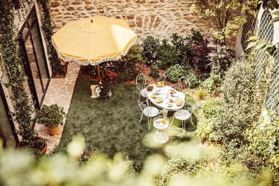 Dans la collection des hôtels Monsieur, chacun sa personnalité et son adresse, son lieu qui lui ressemble. Comme une famille ou une bande de copains qu’on irait visiter à tour de rôle, aux quatre coins de Paris ! Monsieur Aristide, le dernier né, c'est le plus bohème de tous. Avec son âme d’artiste, il ne pouvait élire domicile qu’à Montmartre ! Rue Aristide Bruant, qui plus est. La gouaille du poète n’est jamais loin dans le quartier. C’est pourquoi des instruments de musique sont laissés çà et là pour les voyageurs musiciens dans cette maison hôtel, de même qu’un juke-box. La déco ? Elle est faite d’objets chinés dans les brocantes parisiennes, mélangeant les styles et les époques dans les 25 chambres au style néanmoins épuré. Le tout signé par l’architecte d’intérieur Marion Collard. On kiffe aussi la posture green friendly de Monsieur Aristide, avec des panneaux photovoltaïques, une cuve pour les eaux de pluie, des matériaux de récup’… Et, comble du luxe aux Abbesses, l’adresse dispose d’un petit jardin (sur lequel donnent les terrasses des chambres). Le top pour boire un verre ou dîner à toute heure de la journée. La vie de bohème !