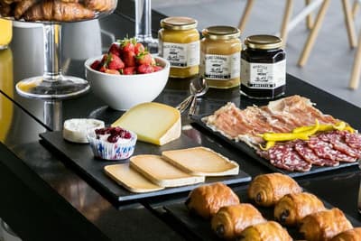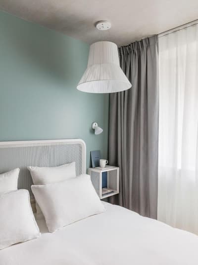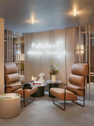 Si vous likez les trains et les ambiances de gare, vous allez kiffer ! Impossible d’en être plus proche : l’hôtel a été construit sur l’ancien quai numéro 1 de la gare de l’Est... Réservez évidemment une chambre avec vue sur les voies pour suivre les arrivées, les départs, les mouvements de locomotive ! Pas besoin d’hésiter pour la choisir, l’aménagement est le même partout et l’insonorisation au top. L’hôtel occupe un emplacement assez improbable, encaissé entre les rails et le mur de soutènement d’un grand escalier et d’une rue en surplomb. Ces derniers rattrapent les dénivelés, tout en reliant la gare de l’Est et la gare du Nord. D’ailleurs, l’incroyable toit-terrasse de l’hôtel vaut à lui seul un selfie. Raccordé à la rue par des passerelles, il a été conçu comme un square-jardin public où glandent les jeunes du quartier. Achevé en 2019, l’hôtel adopte un design moderne, agréable et fonctionnel. Membre de la chaîne Okko, il propose aussi un super espace Club, gratuit et ouvert 24h/24, un peu comme dans un aéroport. Dans les lounges vitrés qui donnent sur les quais, vous pourrez lire, discuter, travailler, faire un peu d’exercice puis profiter de l’aperitivo, une collation offerte chaque jour entre 18h30 et 20h.