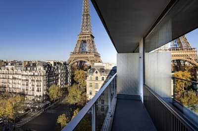 Cet hôtel de la gamme Pullman jouit d’un emplacement exceptionnel pour qui rêve de dormir avec vue sur la Tour Eiffel et son scintillement nocturne.