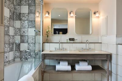 Pas de prétention ni d’effet d’annonce trompeur : le Royal Madeleine veut être une pension de famille 4 étoiles, pas un palace pour jet setteurs ! En reprenant en main l’hôtel de ses parents, Coralie Legrand a fait un travail remarquable. Une année de transformations, et elle a boosté toute la maison ! Le résultat ? 51 chambres classiques et magnifiques, décorées dans un style bourgeois tradi mais pimpées de couleurs à croquer, et 8 chambres et suites avec terrasse ou duplex. Et là, pour le dire franchement, Coralie s’est lâchée ! Ces terrasses sont immenses, équipées de transats comme à la plage : elles donnent une sacrée respiration, une bouffée de calme, dans ce quartier dense, trépidant, en suractivité. Ici, vous pouvez chiller sur les toits de Paris, au soleil, avec un jus frais venu direct du bar ou un cocktail maison – un Gin basil smash, par exemple, avec gin, basilic, citron et tonic. Ou même commander un hot dog réparateur... Sinon, l’autre grand atout de l’adresse, c’est son spa : la nouvelle capitaine a fait creuser le sous-sol pour y sculpter une piscine, chauffée s’il vous plaît ! Et avec une salle de fitness, des ballon de Pilates, des tapis de yoga et un sauna, vous n’aurez plus jamais mal au dos, aux pieds, à rien : merci l’hôtel qui fait du bien !