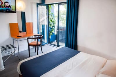 Si vous souhaitez faire rimer bon rapport qualité-prix et écologie, on a l’adresse qui va bien ! L’engagement écolo est vraiment dans l’ADN du Solar Hôtel, un établissement qui mise depuis plus de 20 ans sur une hôtellerie verte. Récupération des eaux de pluie, tri sélectif, panneaux solaires, petit-déj' 100 % bio, prêt de vélos… Le Solar coche toutes les cases et mérite bien son Ecolabel européen ! En tant que client, vous êtes invité à préférer l’escalier à l’ascenseur, à ne pas changer de serviette de toilette tous les jours, à bien éteindre la lumière quand vous partez. Ne vous étonnez pas de ne pas capter le wifi dans votre chambre, c’est zone blanche, pour éviter d'éventuelles ondes qui empêchent de dormir. Eh oui, on pense à vous au Solar ! Pour atteindre des prix défiant toute concurrence à Paris, les chambres sont assez spartiates et la déco minimaliste, mais il y a Canal Plus et le petit jardin de l’hôtel est juste extra. Comme le quartier. À deux pas, la rue Daguerre, avec tous ses restos et ses commerces, vous plonge dans la vie d’un vrai Parisien. Libre à vous de vous acheter un sandwich ou une salade et de manger dans le jardin du Solar. Juste avant de partir découvrir les extraordinaires Catacombes de Paris, à moins de 5 minutes à pied.