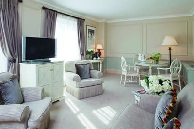 Le top ! La vue est superbe. Cette belle chambre baigne dans une atmosphère sereine et reposante. Agréable et confortable, elle a tout ce qu’il faut pour un séjour merveilleux. Elle accommode un lit king et le coin salon est meublé d’un canapé et de beaux fauteuils. Salle de bain avec baignoire et douche italienne.