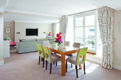 Chic et élégante, elle est raffinée. La pièce baigne dans des tons neutres pour une ambiance sereine. Le style victorien et moderne rend la décoration harmonieuse. Elle laisse pénétrer la lumière naturelle pour une pièce lumineuse et accueillante. Des couleurs vives lui donnent du peps.