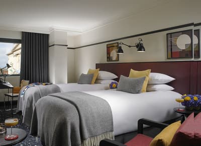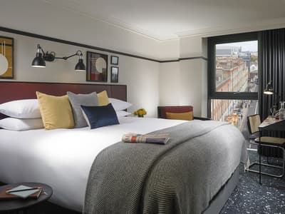 Vous entrez dans un univers de design tendance ici à l’hôtel The Mont, au coeur de Dublin ! Les éléments de l’époque géorgienne sur la façade avec ses ferronneries noires ultra élégantes dialoguent à merveille avec l’esprit « old school is the new cool » à l’intérieur. Dès le lobby, vous allez craquer pour Monty le bouledogue adorable de la maison ! Et vous serez charmés par cette ambiance feutrée avec ces briques noires et cette grandes table en bois où trônent des lampes de bureaux. Même si vous êtes en vacances, vous aurez envie de vous installer pour écrire quelques lignes à la Oscar Wild ou lire un bon magazine. Grandes fenêtres à guillotines, tons noirs et gris qui contrastent avec le végétal installé sur les murs, le jardin d’hiver et les coussins colorés, le lieu est survitaminé ! Un vrai coup de boost qui est complètement raccord avec le wifi ultra rapide mis en place ici pour les travailleurs nomades. Vous allez débrancher tout en restant branchés en vous faisant plaisir à la table du resto italien ou en sirotant une pinte de craft beer au bar. Sans oublier d’aller faire un tour à la salle de sport ultra équipée en appareils cardio et de musculation accessible 24 heures sur 24 ! Avant ou après le petit déjeuner sous forme de buffet à tomber en donnant une petite caresse à Monty au passage.
