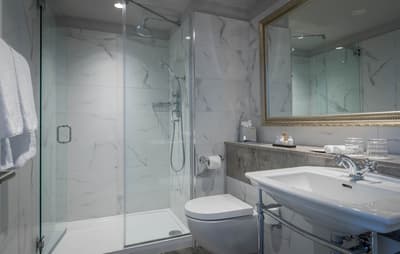 Elle a tout ce qu’il faut pour un séjour purement confortable et agréable. Cette belle chambre baigne dans une atmosphère sereine et reposante. Elle accommode un grand lit ou des lits jumeaux et dispose d’un coin salon avec de beaux fauteuils. Salle de bain chic avec douche à effet de pluie.