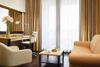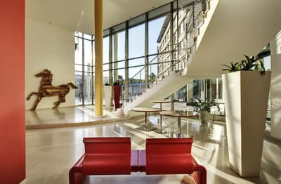Si vous aimez les chevaux et les courses hippiques, l’établissement UNAHOTELS Varese est the place to be ! Certaines chambres ont une vue directe sur l'hippodrome depuis le balcon, avec de la verdure à foison donc ! Et d’ailleurs, la décoratrice de l’hôtel a poussé le concept jusqu’au bout, puisque du côté de la déco et du design des chambres, c’est full cheval. Des portraits de montures et de cavaliers célèbres font office de tête de lit ! Alors après, ce resort c’est un peu la démesure en mode conquête spatiale, la preuve : en levant les yeux dans le lobby, on peut mater les étoiles (elles sont fausses bien sûr, mais c’est pour le fun). Pour les kids et les parents il y a une piscine, un billard et des bains à bulles. Pour les sportifs, il y a une salle de fitness. Pour les épicuriens, il y a le restaurant et le bar à vins ! Et on ne va pas se mentir : même si vous êtes un peu loin du centre-ville, la situation est assez canon puisque le lac de Côme et le lac Majeur sont tous les deux à moins d’une heure de route…