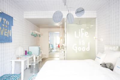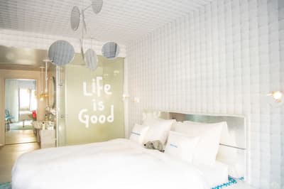 L’heure du jugement dernier a sonné ! Sauf que c’est à vous de décider si vous allez prendre l’ascenseur vers le haut ou vers le bas. Dans cet hôtel 25hours, le design des chambres est inspiré par L’Enfer, première partie de La Divine Comédie de Dante. Si jamais vous l’avez dans votre immense pile à lire comme moi, c’est le moment ! Les chambres Paradiso sont assez classiques, pures, dans des tons blancs et bleus qui iront à merveille avec vos jolis yeux. Les chambres Inferno, par contre, ont de quoi faire des cauchemars. Et c’est justement tout leur atout ! Avec ce rouge lugubre et ce noir perçant, et des mots écrits comme au sang aux murs, les fans de films d’horreur seront ravis. Ça tombe bien, l’hôtel est également muni d’un cinéma privé projetant une sélection de films minutieusement choisis. Après avoir fait un tour à la salle de sport ou au sauna, c’est l’endroit où se poser tranquillement. Bien plus accueillant, le reste de l’hôtel se révèle tout aussi original avec un immense atrium ensoleillé et verdoyant à la déco marrante. Regardez cette table en verre portée par un kraken ! Décidément, ce n’est pas Morphée qui vous ouvre les bras ici, c’est Satan. Attention à vous, Hannibal Lecter adore Florence !