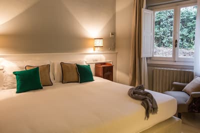 Un hôtel infiltré dans une partie de palais XVIIIe, un parc privé le plus grand d'Europe et une ambiance bohème à souhait de l'autre côté de l'Arno.