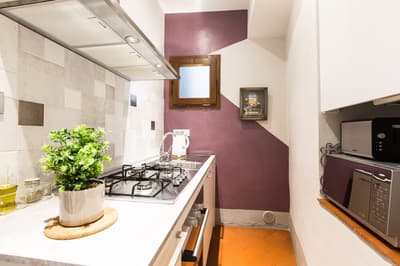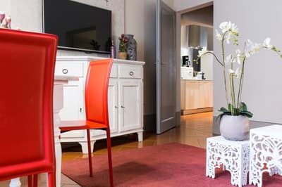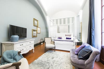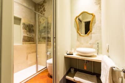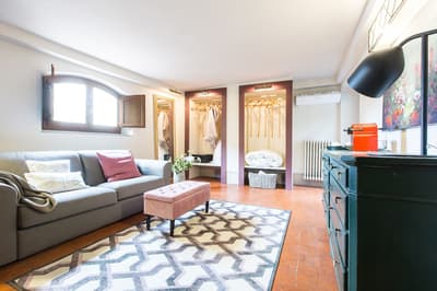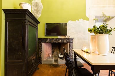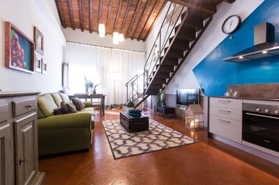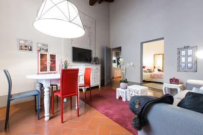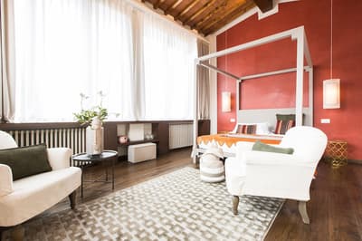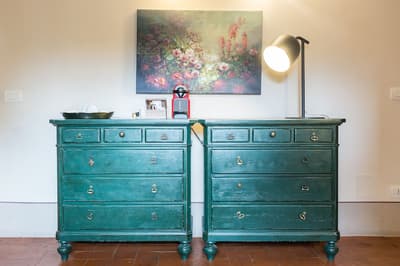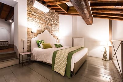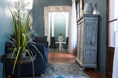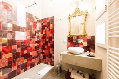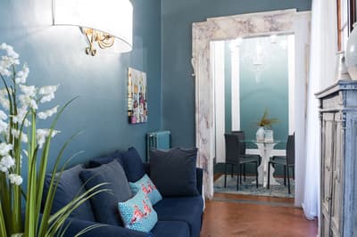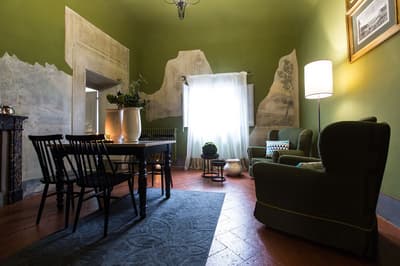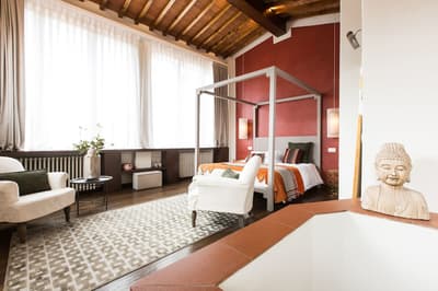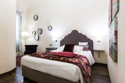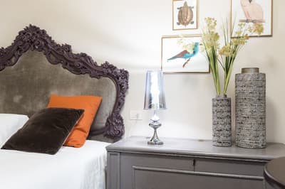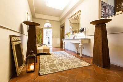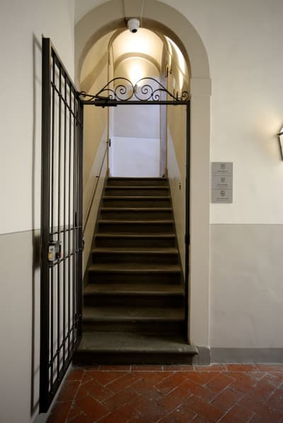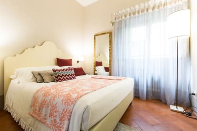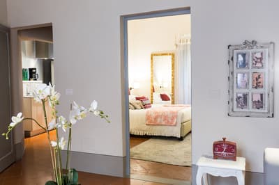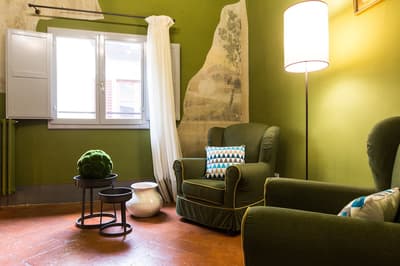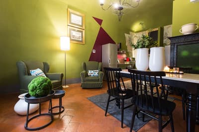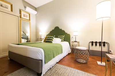 Une rue étroite et calme, à quelques minutes à peine de la célèbre Via de Tornabuoni, le must en matière de shopping chic. Une porte verte et pas d’enseigne. Il suffit de sonner pour entrer dans ce petit palais XIVe. Vous serez probablement accueilli par Marco. A moins que ce ne soit Alessio, les 2 frères et propriétaires. 4 appartements, 3 chambres en B&B pour 7 univers soigneusement imaginés par les 2 complices. Sols en terre cuite et fresques du XVIIe -lorsqu’ils ont pu être conservés- escalier en pierre et poutres au plafond : l’esprit florentin est bien inscrit dans ces murs. La chaleur de l’accueil rejoint celle de votre appartement. Soigné et intime. Des couleurs déterminées sans être agressives, un mobilier qui mélange les styles sans y toucher et surtout sans mauvais goût. Un beau miroir, d’élégantes suspensions, un lit à baldaquin ou des mosaïques dans la salle de bains : on n’est pas étonné d’apprendre que de nombreux meubles ont été restaurés ou imaginés par des artisans du coin. Ne vous y méprenez pas, les entités B&B n’ont rien de riquiqui : de 26 à 96 m² ! Seule absente, la cuisine, puisque le petit-déjeuner est inclus. Et là encore le même cachet, le même souci du détail. Un peu la même impression d’être à la maison.