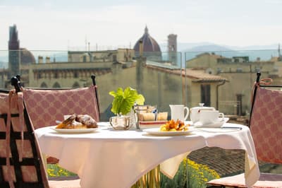 Une adresse élégante avec une jolie piscine sur un immense rooftop. Le panorama sur Florence et ses collines est absolument spectaculaire.