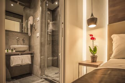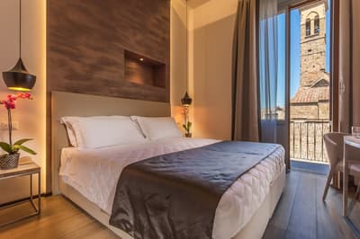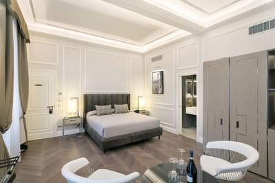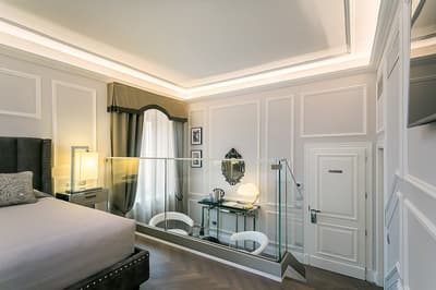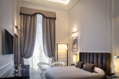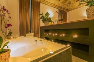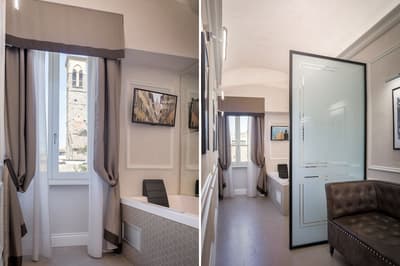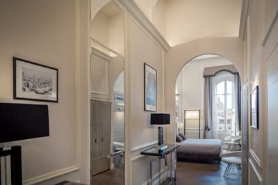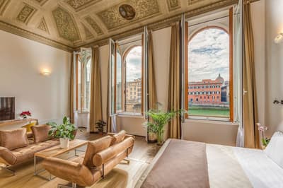 Une demeure historique en plein cœur de Florence et de ses trésors, rien de tel pour un week-end romantique ! Vous arrivez en avion, l’aéroport n’est qu’à 20 minutes. En étape et en voiture ? Heureusement qu’il y a un voiturier ! Une façade aux teintes ensoleillées, de jolis volets, et, à l’intérieur, bien des surprises. Déjà, la cour étouffe les bruits. Puis voici le lobby, à la modernité théâtrale, entre son comptoir tout de doré vêtu et ses sculptures abstraites. Un coup d’œil sur le bar Vittorio : il emprunte son nom au plus célèbre des hôtes des lieux, Vittorio Alfieri, un écrivain chéri des Italiens. Votre chambre maintenant. Vous êtes en amoureux ? Avez-vous bien précisé votre demande, en chambre comme en suite, pour une vue sur l’Arno ? De hautes fenêtres, des plafonds parfois ornés de fresques, élégance et Renaissance font ici bon ménage. Pas de restaurant, mais un chouette petit déjeuner, grâce à un partenaire soucieux de produits de qualité. La journée va être longue en visites, tant la ville regorge de trésors, mais tout se fait à pied ! Galerie des Offices, cathédrale, palazzo Vecchio et jusqu’aux roucoulades sur le fameux Ponte Vecchio. Et pour contempler toutes les merveilles que vous avez butinées, direction le rooftop : un Negroni, vue sur l’Arno et le Duomo. Kiss me amore!