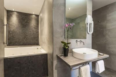 Idéale pour les couples, cette belle chambre baigne dans une atmosphère romantique et sereine. Installée dans un cadre intime et serein, elle a tout ce qu’il faut pour un séjour merveilleux. Sa grande fenêtre profite d’une belle vue sur la cour intérieure et sur l’architecture merveilleuse du complexe. Elle accommode un grand lit et dispose de beaux fauteuils dans un coin de la pièce. Salle de bain avec douche à effet de pluie et jacuzzi.