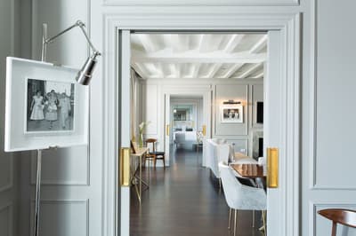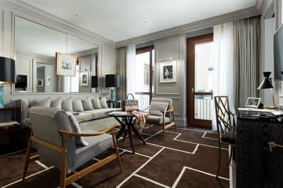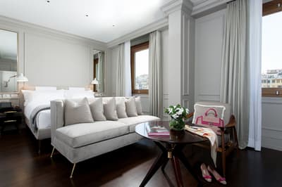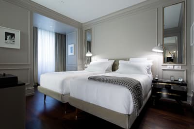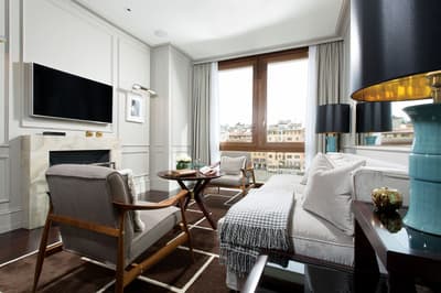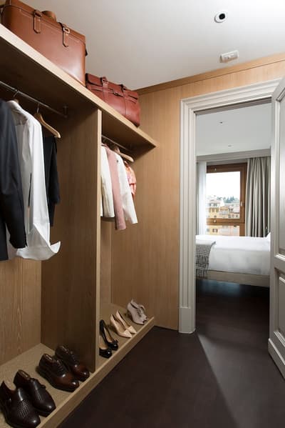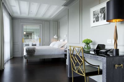 Clic clac, vous allez pouvoir tirer le portrait du Ponte Vecchio sous toutes ses coutures depuis le Portrait Firenze ! De jour, de nuit, en plongée, en contre-plongée, vous verrez qu’il est toujours magique, surtout avec cette vue incroyable. Des fenêtres et des terrasses de cet hôtel au design contemporain, il va vous accompagner partout. Et ce qui est frappant ici, c’est ce contraste entre l’ancien et le moderne, comme si vous viviez 2 époques en 1 ! Voire 3, puisque le décor vous plonge aussi dans le vintage des années 50. Vous serez d’ailleurs entourés de photos des stars de l’époque. Audrey Hepburn, Grace Kelly et Brigitte Bardot seront vos jolies voisines de salon ! Ces clichés en noir et blanc s’accordent à merveille avec le style très raffiné de l’hôtel. Tout est dans les tons gris, blanc, noir et or, pour un rendu vraiment très chic. Un peu partout, les grands miroirs, les œuvres d’art, les luminaires sur pied ou posés, les tapis graphiques et les gros bouquets de fleurs blanches apportent beaucoup d’intimité, comme dans des apparts privés. On a juste envie de tirer la poignée chromée des élégants fauteuils vintage pour se poser au salon, au restaurant ou en terrasse. Et admirer, encore, cette vue géniale sur le fleuve et son pont mythique.