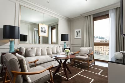 Une adresse élégante et luxueuse à la décoration vintage esprit années 50, où l’art s’exprime. La vue sur le Ponte Vecchio et l’Arno y est éblouissante !