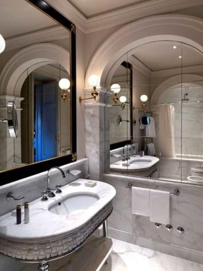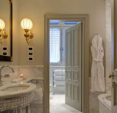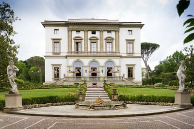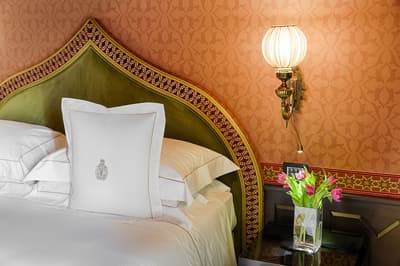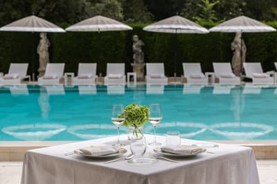 Vous voilà au-delà de Porta Romana, au sud de la vieille ville, la rue serpente jusque sur la colline. Un parc aux arbres majestueux et voilà qu’apparaît la villa, tout en noblesse XIXe. Erigée pour le baron Oppenheim, elle offre sa façade rose poudrée à chaque rayon du soleil. Des buissons taillés au cordeau, un perron, fermez les yeux : vous êtes l’impératrice Eugénie ou Claude Debussy, deux des illustres hôtes des lieux. Accueilli avec une certaine cérémonie, on vous mène à votre chambre. Au premier, l’étage noble et ses sublimes fresques, toutes originales. Pour le rose qu’affectionnait la veuve de Napoléon III, c’est au second que l’on vous conduira. Orientaliste dans l’âme, grimpez donc jusqu’au 3e. Tout n’est qu’antiquités et mobilier précieux. Dehors, des chênes séculaires, des ifs altiers et des rosiers délicats encadrent la piscine chauffée qui n’attend que vos gracieux plongeons. Mais pas à midi, quand, par beau temps, le déjeuner sera servi dans le jardin d’hiver. Furetez donc pour admirer la salle moresque, orientalisante en diable, la salle Blanche et sa monumentale cheminée en marbre de Carrare et surtout le Salon des Glaces, tellement baroque. Au coucher du soleil, passage obligé par la vaste terrasse : n’oubliez pas votre appareil photo, la vue sur Florence y est juste fabuleuse. Et après dîner, cherchez donc ce salon secret : murs lambrissés et velours rouge, le bar privé dissimule une collection de cigares à damner les amateurs !