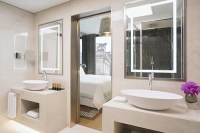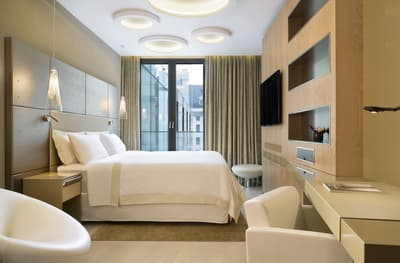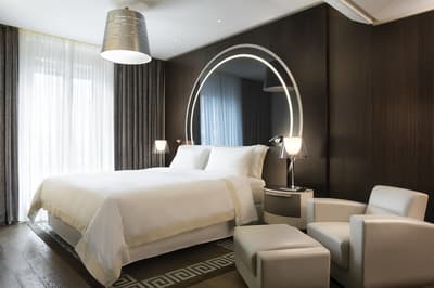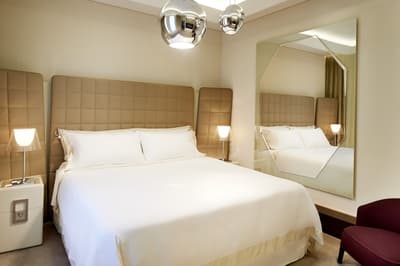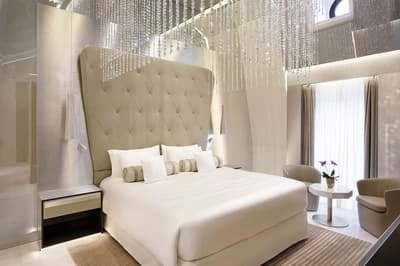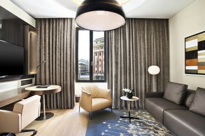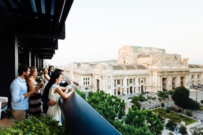 Et si vous dormiez dans un véritable bijou de luxe alla Milanese en choisissant Excelsior Gallia ? Vous allez déjà en prendre plein la vue face à l’hôtel, qui existe depuis les années 30 et qui illumine la rue par sa prestance à la fois baroque et art déco. Passez sous le porche élégant pour entrer dans un univers de marbre et de granit noirs rehaussés de tons crème... Le lobby est ultra-chic avec ses colonnes massives étincelantes et son plafond de verre qui laisse entrer la lumière. Ca brille, ça clinque, ça shine ! Non mais rien que le lustre en verre de Murano, dans les escaliers majestueux de 200 ans recouverts d’un tapis douillet, va vous donner le vertige ! C’est un peu la folie des grandeurs ici, digne d’un duc ou d’une duchesse ! Les chambres et suites sont magnifiques et très raffinées, dans des tons neutres et harmonieux. Bref, le tour de force de cet hôtel,c 'est de faire dans le luxe sans tomber dans le bling-bling ! Prenez place sur la terrasse du rooftop et profitez de cette vue sublime sur Milan et cette place de la gare centrale. Quant au spa Shiseido, il est digne des rêves les plus fous des mille et une nuits ! On s'y baigne littéralement dans le cosmos au milieu des étoiles grâce à un jeu de lumières splendide. C’est une expérience magique qui vous attend ici. Ah, et les petits déjeuners font partie des meilleurs de tout Milan.